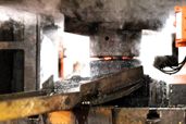 Hot forging press is compressing billets and ingots of iron or steel at very high temperatures